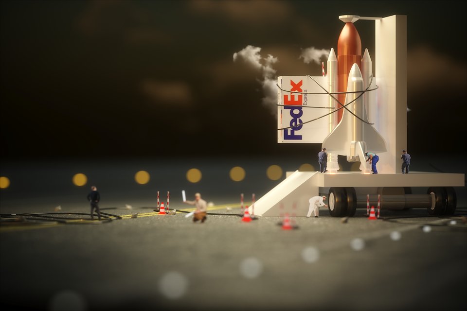 Marketing campaign for FedEx Saudi Arabia visually communicating the distance their carrying capacity every single day.